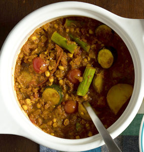 - “3”の野菜を戻し、”2″と水を加え入れて煮込みます。