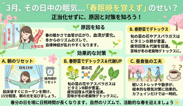 対策として重要なのは、規則正しい生活リズムの維持です。